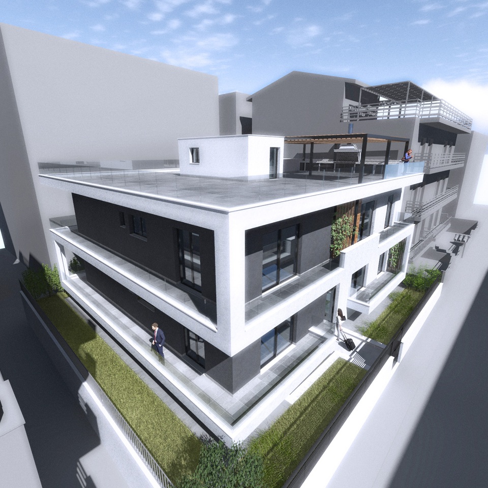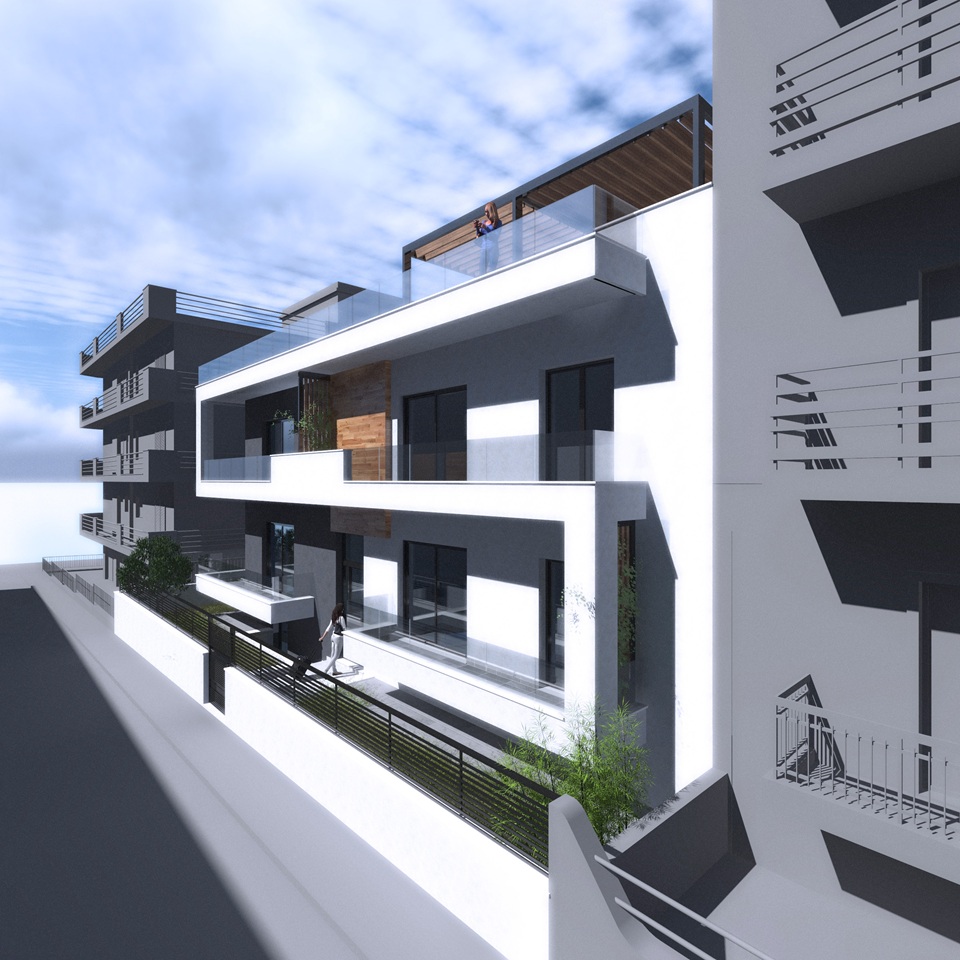 Τό εργο αφορά ριζική ανακαίνιση εξη κατοικιών στους εσωτερικούς χώρους και επεμβάσεις εξοικονόμισης ενέργειας (Θερμομονωτικά κουφώματα, αντλίες θερμοτητας για θερμανση – ψύξη, ηλιακούς συλλέκτες και εφαρμογή θερμοπρόσωψης σε όλο το κτίριο)